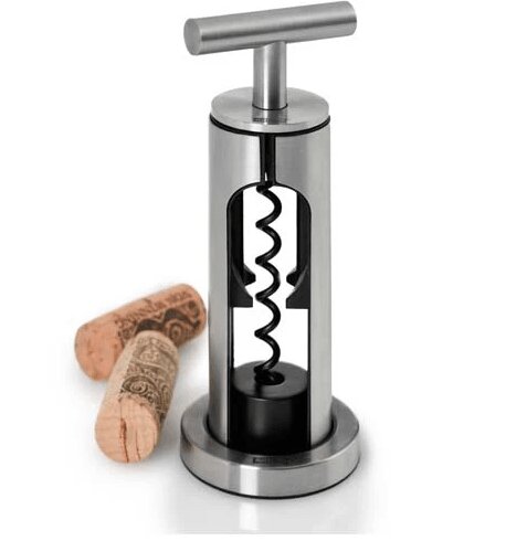Vývrtka AdHoc CHAMP so stojanom vyrobená z nehrdzavejúcej ocele s vhodnou hrúbkou vytvára silný dizajn pre dobrú manipuláciu.
