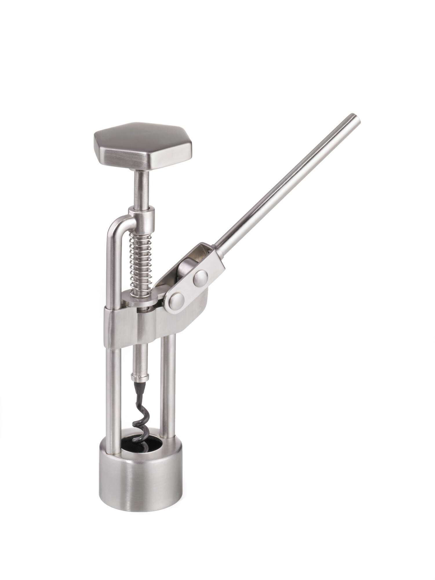 Šedá vývrtka Troika CORK JACK na korky s pákovou funkciou z nehrdzavejúcej ocele 18/8 s jedinečným mechanizmom a pumpuje víno z fľaše bez námahy a presne.