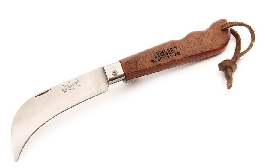 Velmi kvalitní zavírací houbařský nůž značky Mam je perfektní volbou pro každého milovníka hub a lesů. Na konci rukojeti se nachází otvor, ve kterém je praktické kožené poutko.