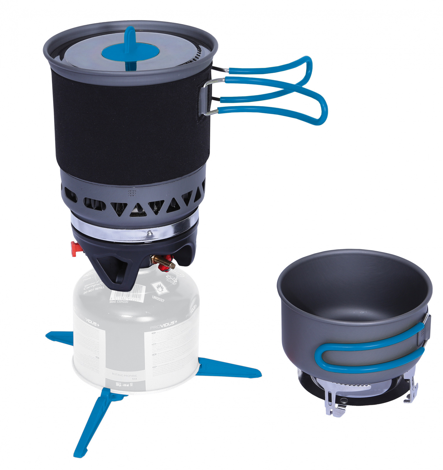 Butanový vařič Blaze je určen pro turistické účely k provozu ve venkovním prostředí k tepelné přípravě pokrmů.Díky integrovanému závětří a výměníku tepla vařič Blaze nejen uvaří rychleji, ale také šetří plyn. Nádoba je konstruována tak, aby se do ní vešel jak samotný vařič, tak 230 g kartuše. Set dále obsahuje plastový stojan na kartuši, pokličku, vařič a adaptér na běžné druhy nádob.