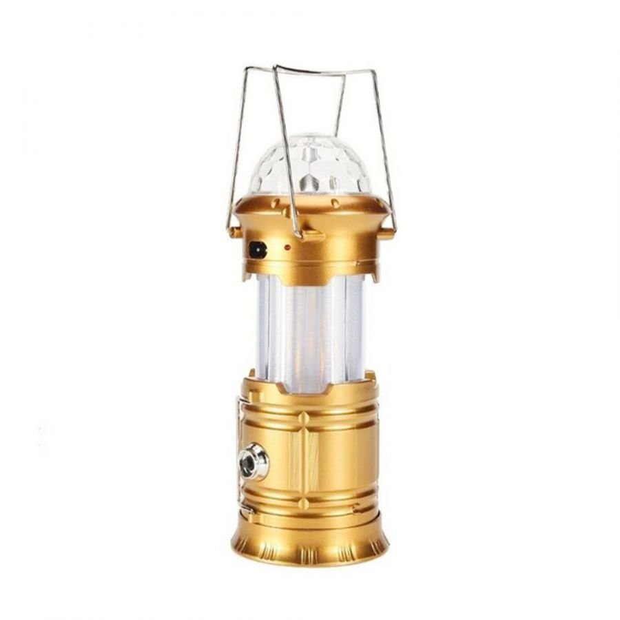 Solární LED kempingová svítilna s efektem stroboskopu - zlatá