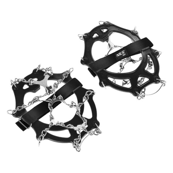 NILS Camp NC1717 jsou řetězové nesmeky - protiskluzové návleky na boty, které poskytují skvělou přilnavost na kluzkém povrchu pokrytém ledem nebo blátem. Jsou také ideální na náročnou, horskou turistiku a nebo na zledovatělné chodníky v městě. NC1717 se velmi snadno nasazují, takže výrobek je určen všem bez rozdílu věku.