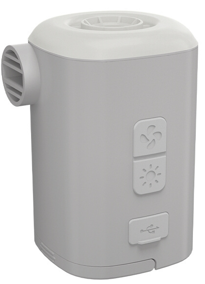 Vhodná pre rôzne výrobky, ktoré je treba nafúkať alebo z nich odsať vzduch (napr. nafukovacie karimatky, postele, vankúše, nafukovacie stany a pod.). Ovláda sa jednou rukou pomocou 2 spínačov. S držiakom na zavesenie ju možno použiť aj ako lampáš. Samotné osvetlenie má 3 úrovne svietivosti + režim maják a režim SOS.