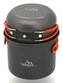 Sada outdoorového nádobí v provedení z anodizovaného hliníku. Sada je tvořena 2x kastroly 14 x 6,5 cm; 12 x 6,5 cm a 2x kotlíky s rozměry 13 x 10 cm; 15 x 11 cm, součástí sady je také houbička na mytí nádobí. Veškeré vybavení je opatřeno sklápěcím držákem, opatřeným silikonovými návleky pro usnadněnou manipulaci. Jednotlivé části sady jsou rozměrově přesně odstupňovány a dají se tak složit dohromady, čímž ušetří spoustu místa. Navíc je vše uloženo v praktické sítěné tašce. Sada je vhodná při turistických a dalších outdoorových aktivitách, kdy chceme zajistit patřičný komfort a zároveň ušetřit místo a váhu zavazadel.