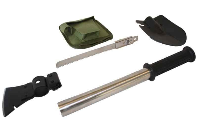 Kempinkové nebo rybářský SPORTS set který obsahuje šest užitečných nástrojů: Rýč, pilka, sekera, kladivo, otvírák na konzervy a vytahovač hřebíků. Pouhým stisknutím knoflíku rychle vyměníte požadovaný nástroj. Pevná ručka je kryta pevnou gumou díky čemuž perfektně tlumí nárazy při kopání, sekání nebo údery kladivem. Všechno náčiní je sbalené v praktické brašně kterou si jednoduše nasadíte na opasek a vše potřebné náčiní máte hned po ruce.