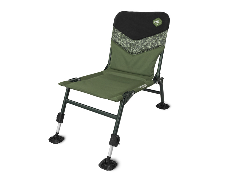 Nohy křesla jsou opatřeny robustními a flexibilními patkami, které se přizpůsobí každé nerovnosti terénu a zároveň zabraňují zaboření do měkké či bahnité země. Přední pár nohou je výškově nastavitelný, čímž křeslo nebude problém rozložit ani na malých a nerovných místech. Zadní nohy jsou fixovány pomocí pojistek, které zaručí, že ani při posouvání se Vám více nohy křesla nezavřou a nehrozí tak nečekaný pád.