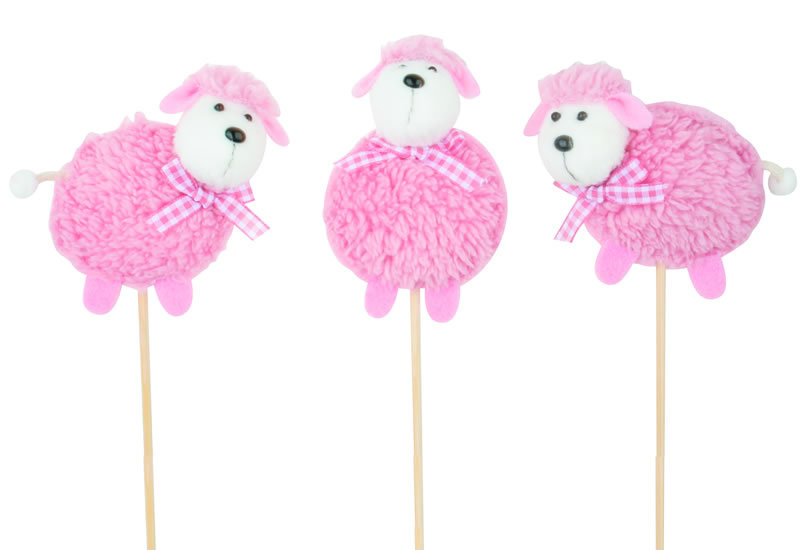 Hebká růžová ovečka na špejli ozdobí květináč nejen o Velikonocích. číst celé