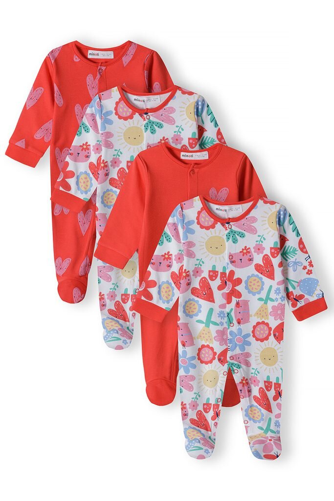 Dívčí kojenecký overal s dlouhým rukávem. S tématikou přírody a srdíček v odstínech červené.