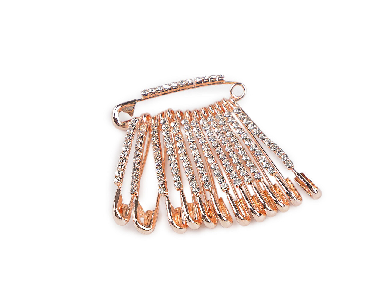 Ozdobný spínací špendlík s broušenými kamínky délka 39 mm - 12 ks - 2 růžové zlato
