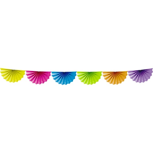 Papírová girlanda v duhových odstínech o délce 4 m, složená s vějířů, udělá krásnou dekoraci na vašem karnevalu, oslavě narozenin, oslavě výročí, nebo letní party. Jednoduše se instaluje a díky použitým materiálům je i ekologická. Navíc je unikátní a zaujme už tím, že takovou girlandu hosté ještě neviděli. Jeden voštinový vějíř má rozměr 17,5 x 3,5 cm Délka: 400 cmBalení: 1 ksMateriál: papír