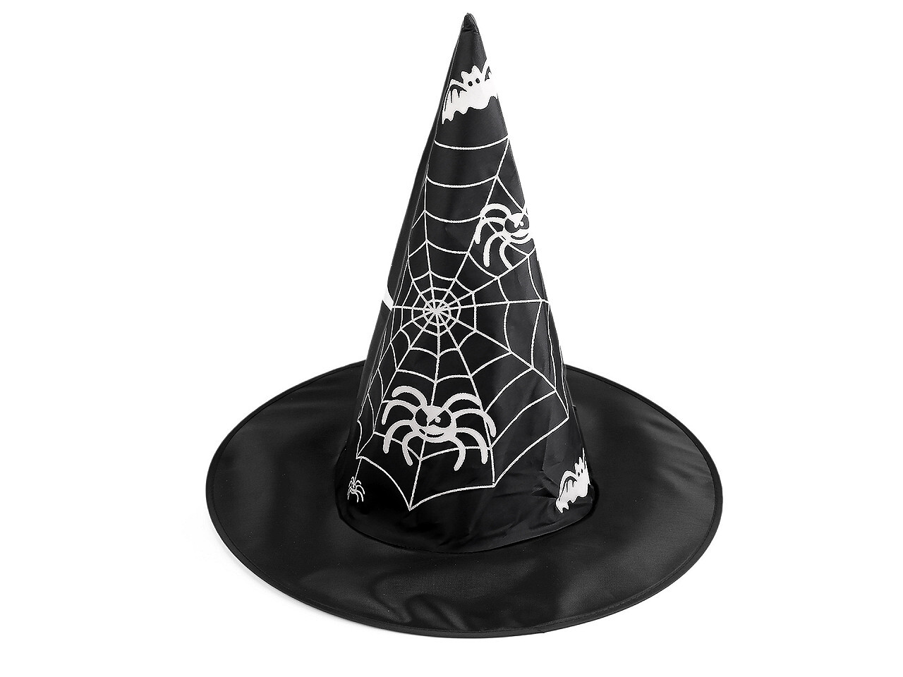 Karnevalový klobouk čarodějnický - pavučina, lebka, netopýr, dýně, čarodějnice - 1 ks - 11 černá