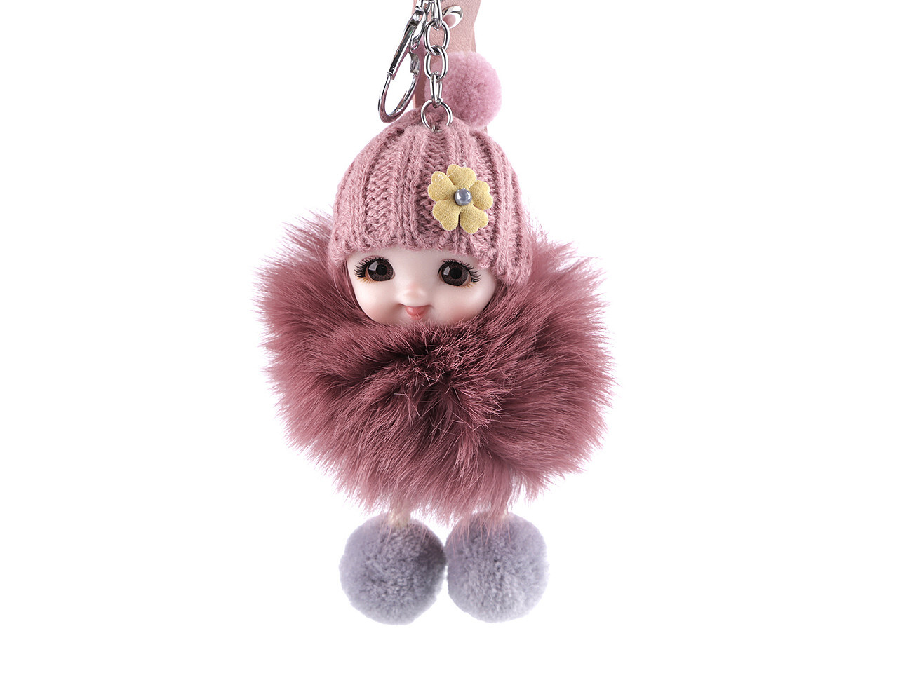 Panenka z kožešiny je zpracována s důrazem na jemné a vkusné detaily, které z ní dělají nejen módní, ale i osobitý doplněk. Připojený řetízek umožňuje jednoduché zavěšení díky plochému kroužku na klíče a praktické otevírací karabině, která zajistí snadné připnutí na různé typy popruhů nebo poutka.