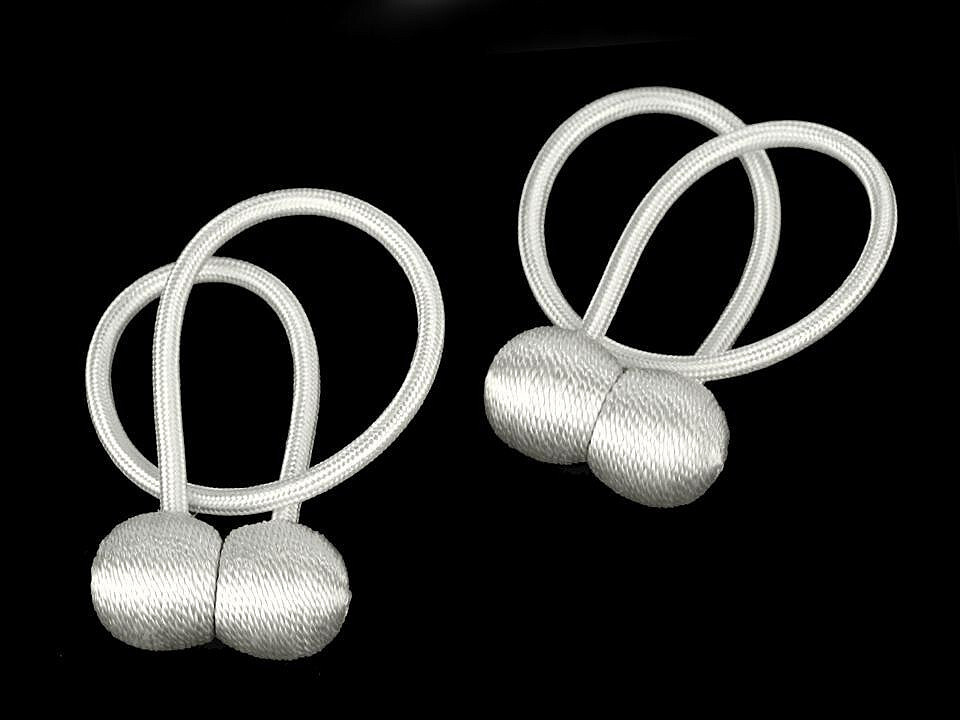 Dekorační úvaz / šňůra na závěsy s magnetem - 2 ks - 1 bílá off white