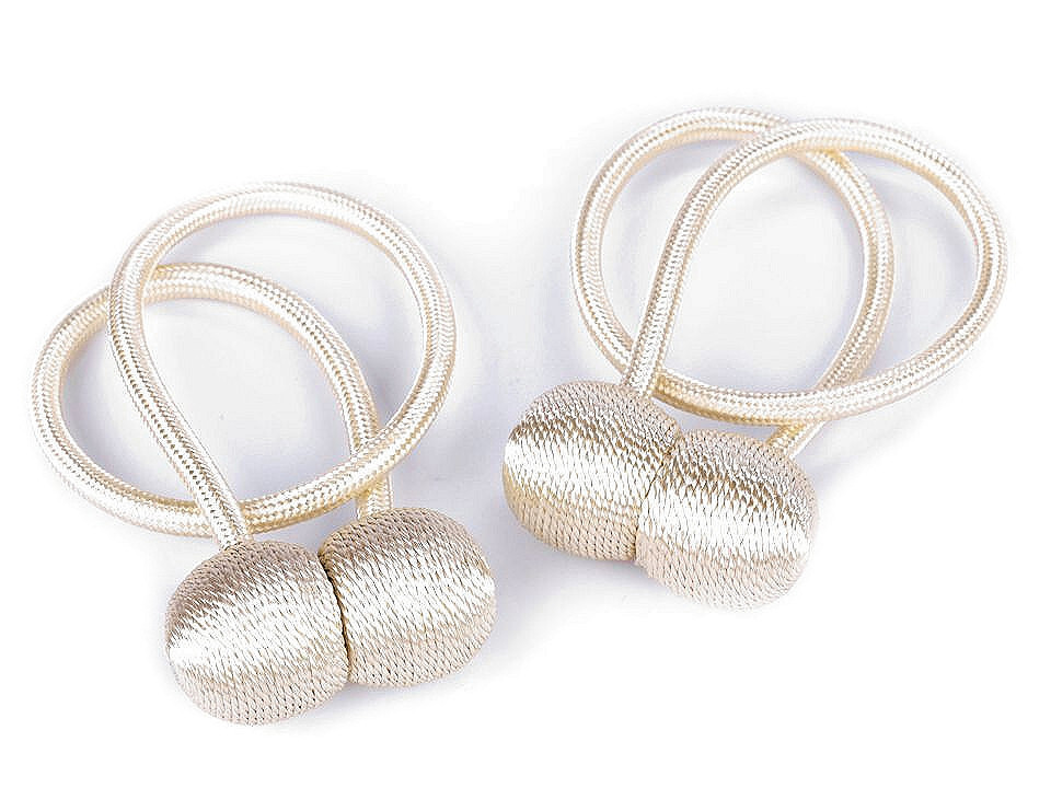 Dekorační úvaz / šňůra na závěsy s magnetem - 2 ks - 2 krémová
