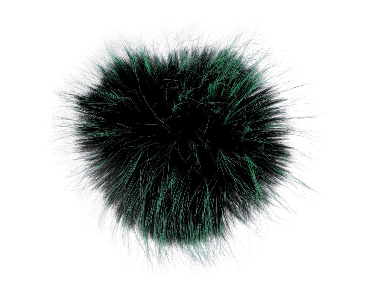 Kožešinová bambule s poutkem Ø12 cm - 1 ks - 3 černá zelená