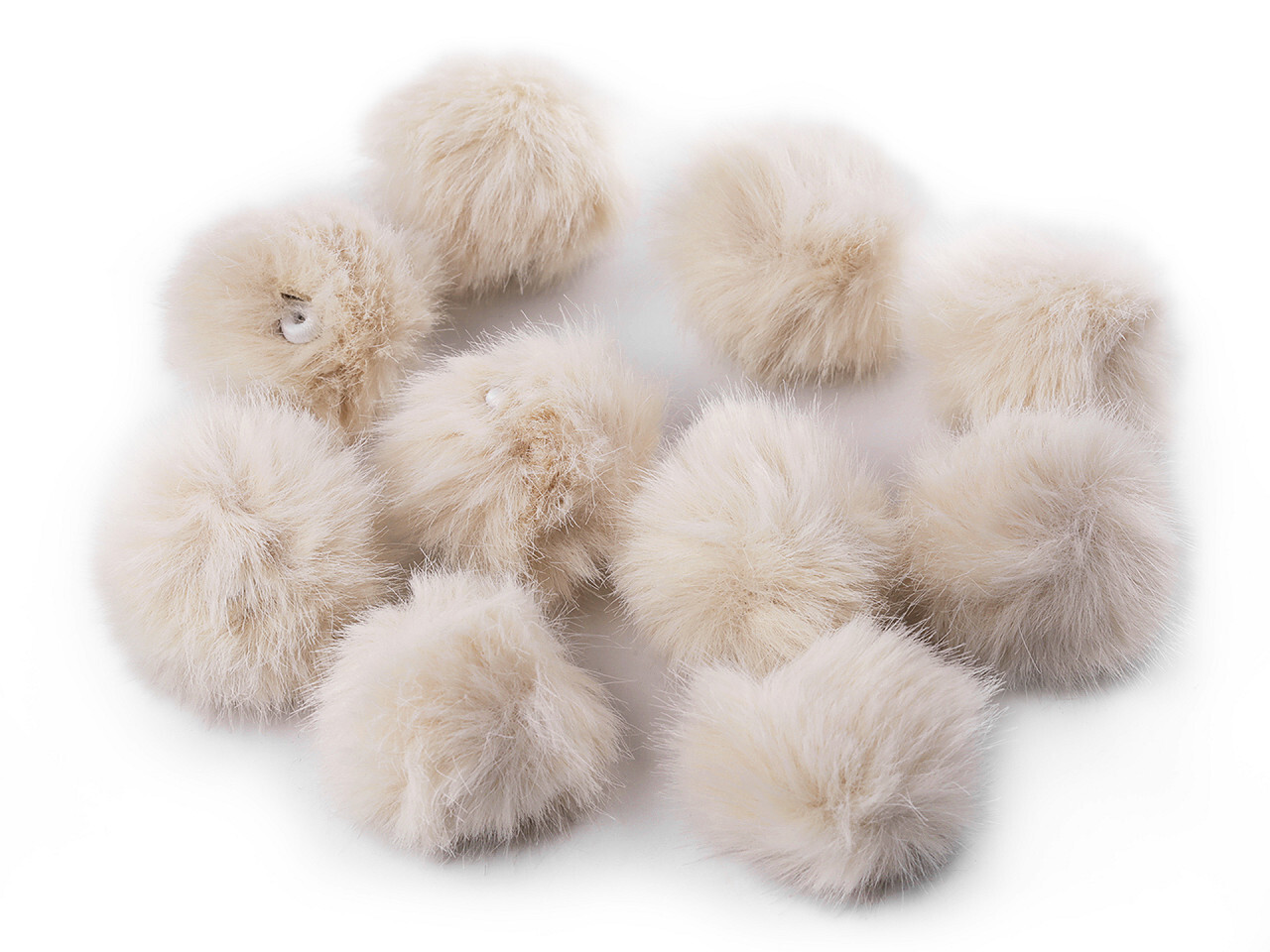 Kožešinová bambule s poutkem Ø3,5 cm - 10 ks - 2 béžová světlá