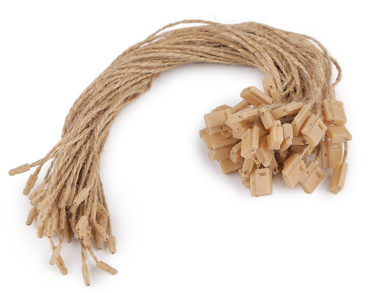 Šňůrka na visačku jutová s pojistkou - 1000 ks - režná přírodní