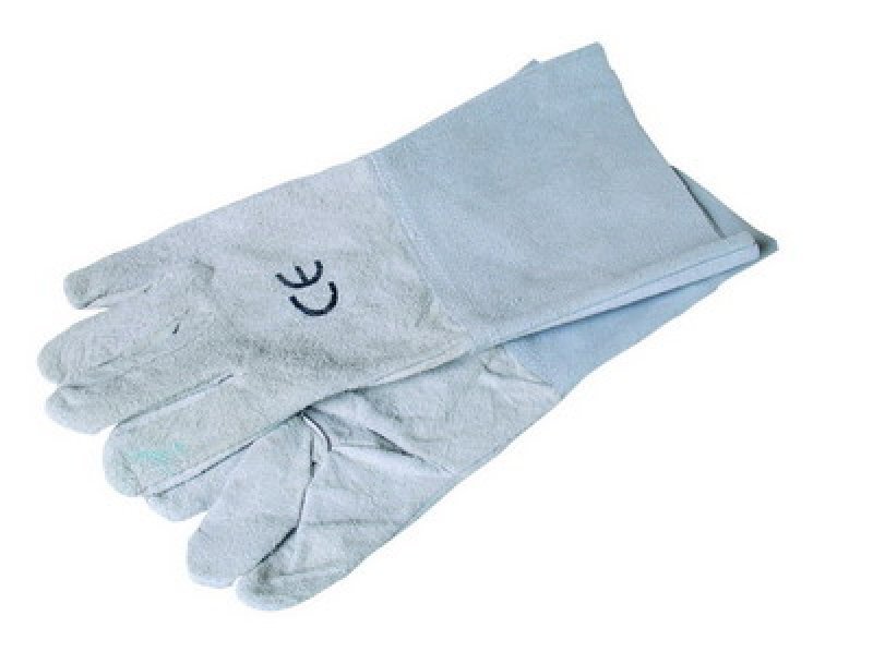 Rukavice z hovězí štípenky s manžetou 15cm, certifikováno pro svářeče CE EN 388 / CE EN 407.