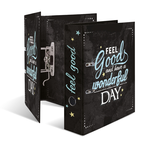 Pořadač s pákovou mechanikou, formát A4, šíře hřbetu 7 cm. Design: Feel Good. Pevné kartonové desky s atraktivním designem zaujmou na první pohled.