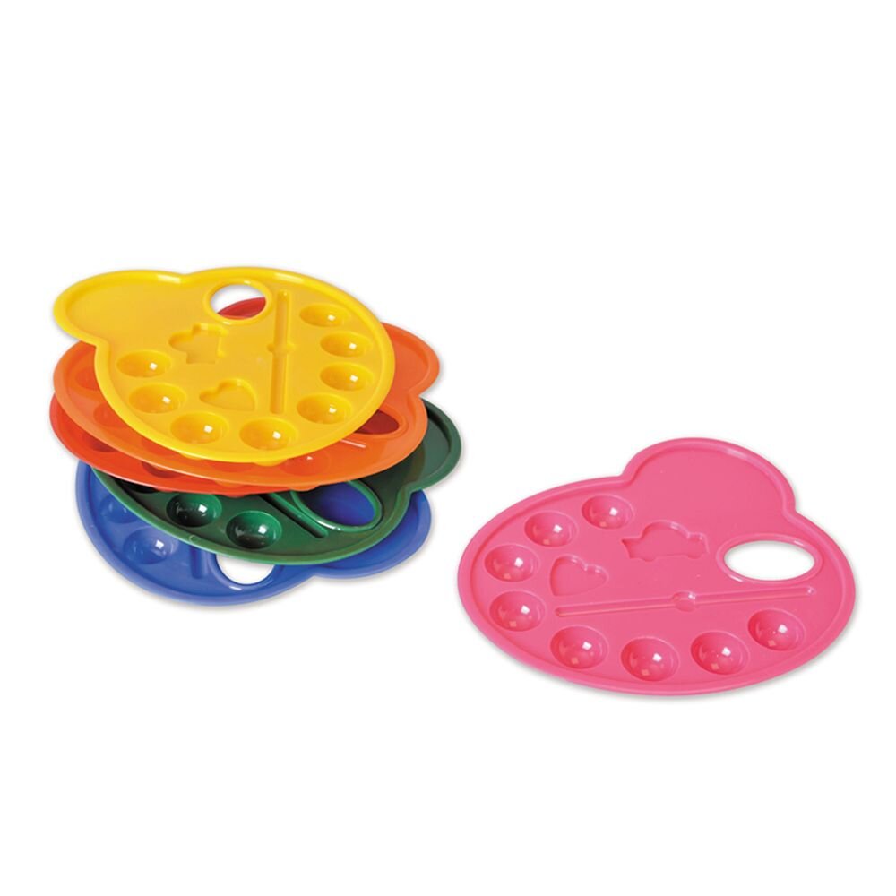 Tato paletka je vyrobena z pevného PVC, díky čemuž je odolná a snadno omyvatelná. Obsahuje 8 jamček na barvy, dvě široké přihrádky pro pohodlné míchání odstínů a jednu praktickou přihrádku na odkládání štětců.