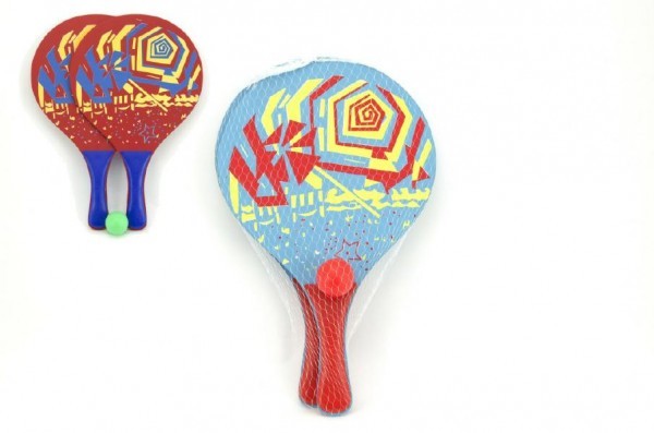 Plážová sada pálky 2ks dřevo 24x38cm s míčkem asst v síťce