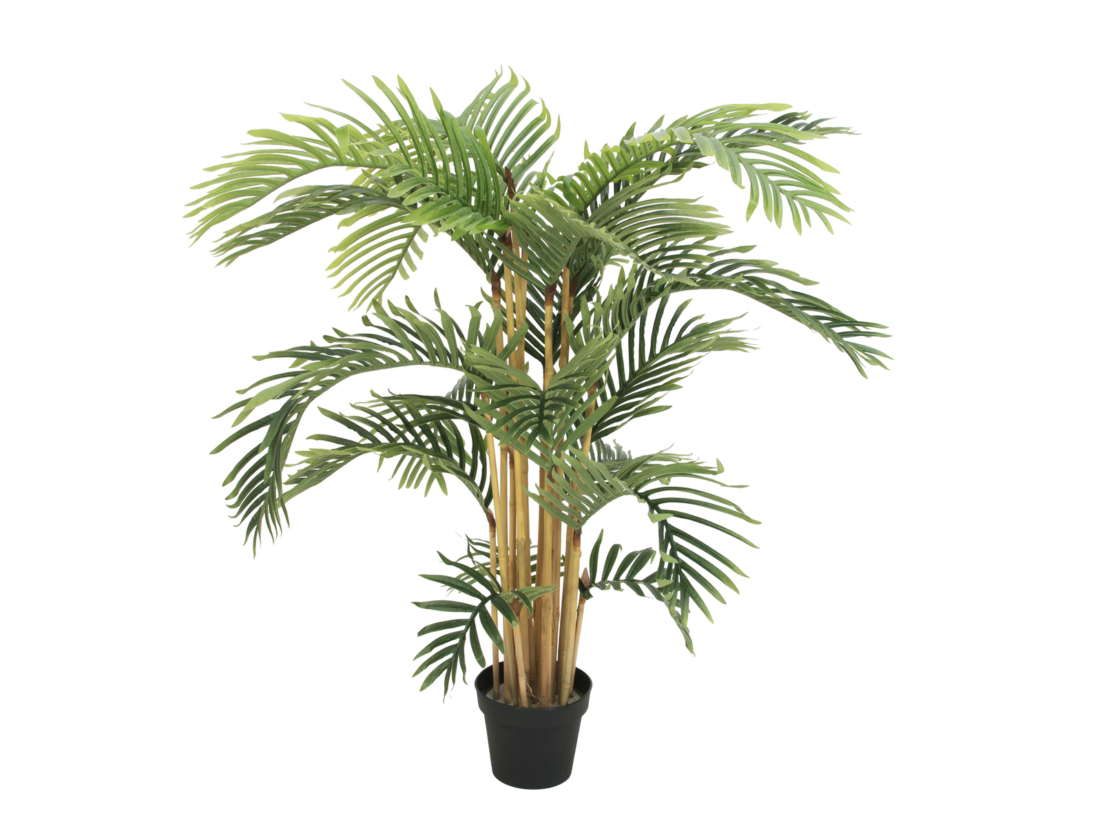 Pokojová umělá palma vysoká 140 cm. Rostlina má velké listy, kmen je vyroben z přírodního materiálu. Palma je dodávána v přepravním květináči. Ideální dekorace do interiéru, která nepotřebuje žádnou údržbu ani péči.Přepravní hmotnost: 3,43 kg