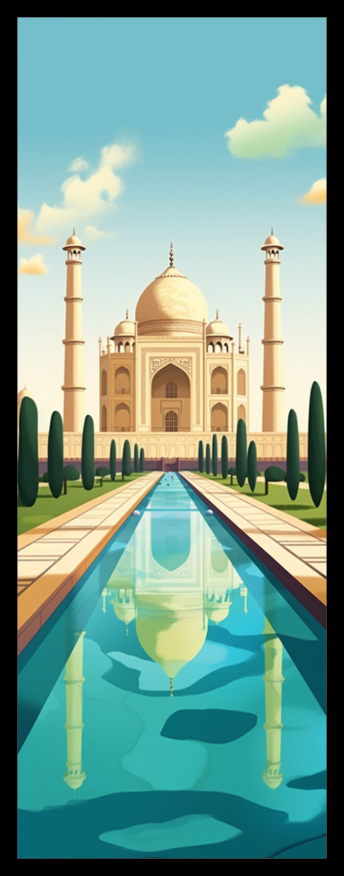 - Elegantní design s nádherným zobrazením Taj Mahal a jeho odrazu na vodní hladině.