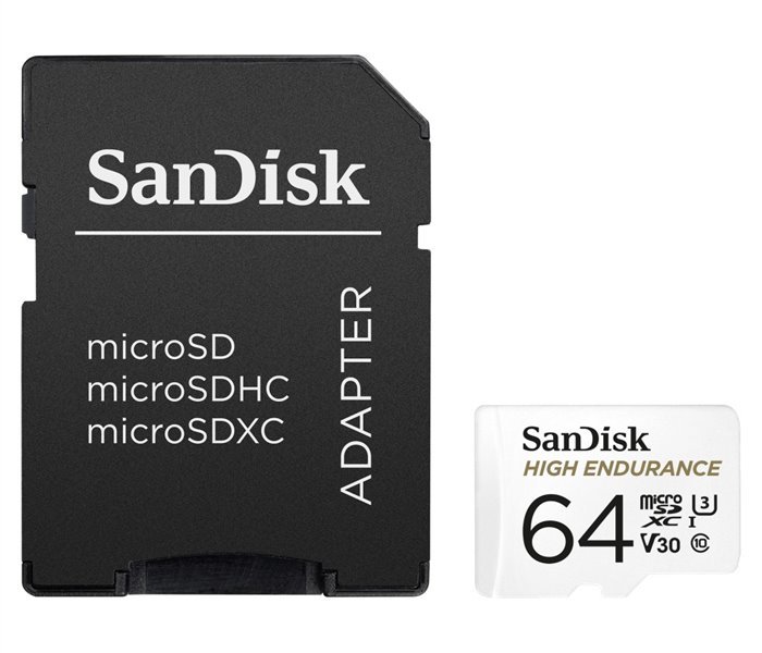 Vysoce spolehlivá a odolná microSD karta SanDisk High Endurance 64GB je ideální volbou pro všechny, kteří potřebují zaznamenávat video bez přerušení a ztráty dat.