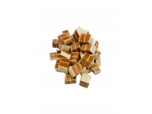 Složení: kuřecí maso 55%, treska 35% kukuřičný škrob 4%, rostlinný protein 2%, konzervanty