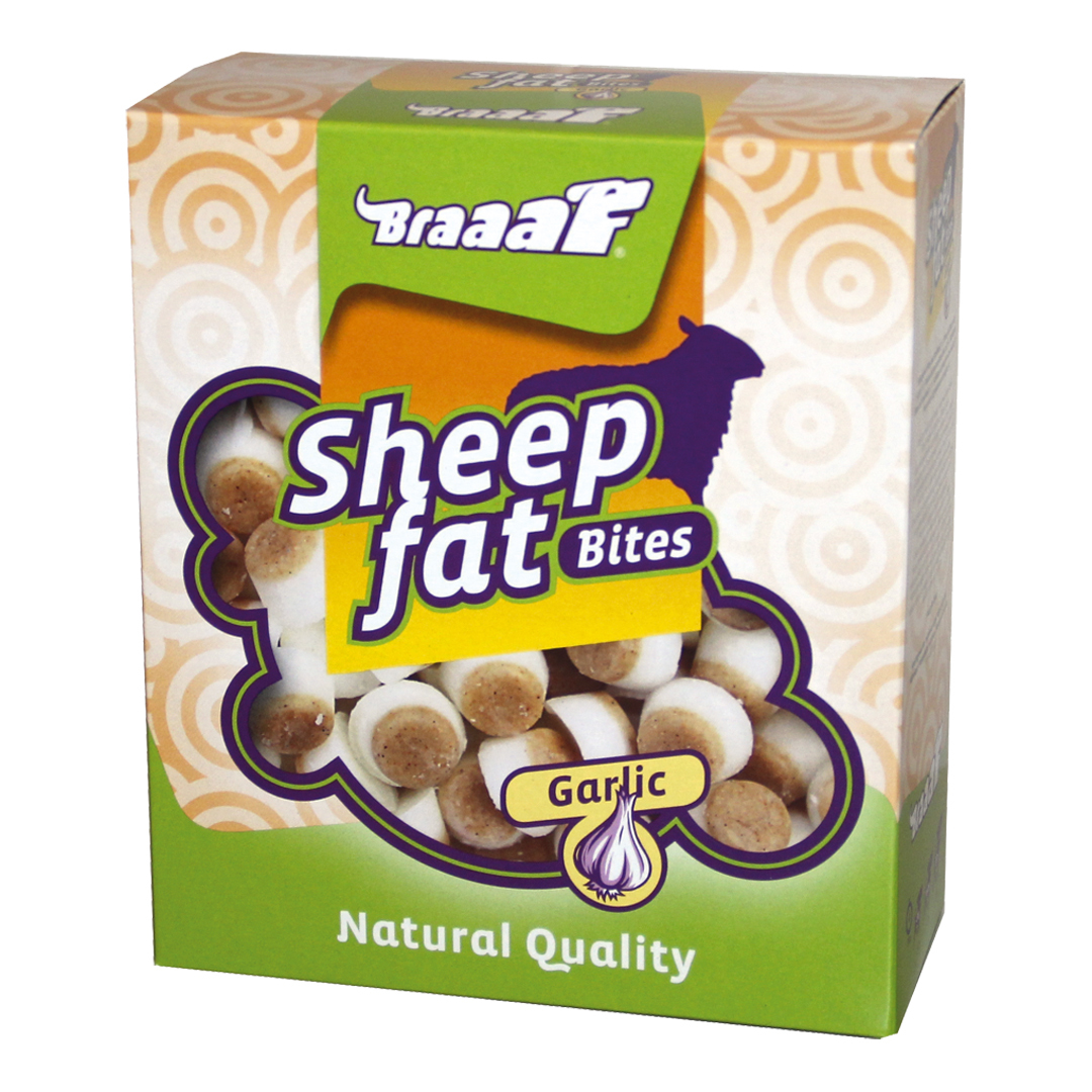 Pamlsky Braaaf z ovčího tuku s česnekem jsou výborná varianta jako pamlsek, svačinka a odměna v jednom. Jsou bohaté na vitamíny, minerály, stopové prvky a hlavně jsou 100% přírodní.ó
