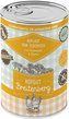Přírodní, vysoce kvalitní a chutné konzervy Hofgut Breitenberg se vyznačují svou zvláštní kvalitou. Jsou bez obilovin a obsahují pouze kůtí a kuřecí zdroj bílkovin v husté konzistenci vyrobené z vysoce kvalitního svaloviny a vybraných částí orgánů. Na podporu zdraví střev jsou Hofgut Breitenberg obohaceny o snadno stravitelnou zeleninu, byliny a oleje. Benefity v bodech: vysový podíl kvalitního jednodruhového masa obsahuje zeleninu Bez obilovin S vysoce kvalitními bylinkami a oleji pro optimální trávení Bez barviv a zvýrazňovačů chutí Bez sójových produktů Bez cukru Složení: 66,3% z kuřecího masa (kuřecí vývar, kuřecí játra, kuřecí srdce, kuřecí žaludky, svalovina z kuřecího masa), 22% z krůty (svalové maso z krůty, krůtí srdce, krůtí žaludky), pastinák (4%), jablka (1% ), dýně (4%), sladké brambory (1%), černý kmínový olej (0,1%), byliny (0,6%) (semena fenyklu, heřmánek, šípková kůra, pampeliška), minerály (1%) (andská sůl) , skořápkový prášek, minerální zemina, mořské řasy). Může obsahovat stopy dalších přísad. Analytické složky: Hrubá bílkovina: 9,5 %,Hrubý tuk: 5,5 %,Hrubý popel: 2,6 %, Hrubá vláknina: 0,6 %, vlhkost: 76,5 %. Doplňkové látky / kg: Doplňky výživy: Vitamíny: Vitamin A: 2500 IU., Vitamin D3 250 IU, Vitamin E 25 mg, biotin 25 µg. Stopové prvky: zinek ve formě oxidu zinečnatého 20 mg, Měď jako pentahydrát síranu měďnatého: 1 mg, jód ve formě jodičnanu vápenatého, bezvodý 0,75 mg Energetický obsah: 4,43 MJ / kg. Doporučené denní dávkování: Váha psa Množství za den 5 kg 310-350g 15 kg 700-810g 25 kg 1020-1180g Skladujte na chladném a suchém místě. Po otevření skladujte na chladném místě a spotřebujte do 2 dnů. Skutečné potřeby se budou lišit v závislosti na rase, věku a úrovni aktivity psa. Krmte při pokojové teplotě. V denní dávce je třeba vzít v úvahu i další krmení pamlsky. Minimální trvanlivost a identifikační číslo šarže: viz štítek na dně nebo víku konzervy.