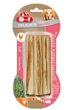 Žvýkací pochoutky s kuřecím masem zabaleným ve vepřové kůži- odstraňuje zubní plak a zabraňuje tvorbě zubního kamene- vhodné pro psy alergické na hovězí maso- dlouhodobý požitek bez zanechání nevzhledných zbytků- jen 6% tuku- bez umělých barviv a dochucovadel