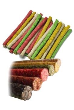 Tato tradiční pochoutka je vyrobena z drcené buvolí kůže, lisované do tenkých, chutných tyčinek o délce 125 mm a průměru 9-10 mm. Je vhodná pro všechny dospělé psy, kteří si rádi pochutnají na kvalitní žvýkací odměně. Tyčky jsou dostupné v různých barvách, což dodává variabilitu a atraktivitu pro vašeho psa.