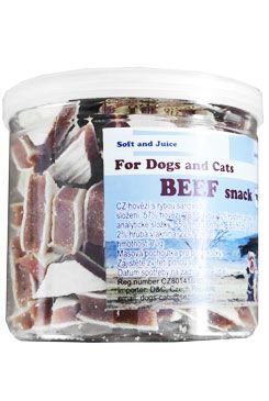 Pochoutka z hovězího masa s treskou v praktické, znovu uzavíratelné dóze.Složení: 57 hovězí maso, 28,5% treska, 10% rostlinný protein, 4,5% škrob.