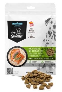 Tapas Gourmet jsou 100% přírodní pamlsky vyrobené z čerstvého masa té nejvyšší kvality. Jsou bezlepkové, neobsahují žádná barviva, geneticky modifikované suroviny, transmastné kyseliny a jsou přírodním zdrojem Omega 9.