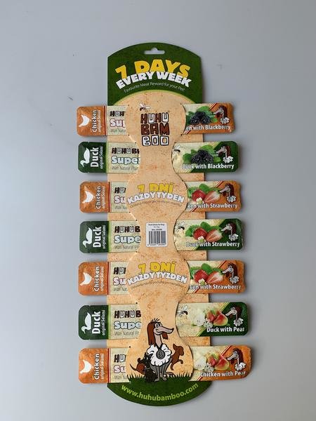 Salám z kachny a jahody - přírodní masová pochoutka pro psy.Krmny? návod: Podávejte jako odměnu při tréninku. Zajistěte dostatek čerstvé vody.Složení: Kachní maso 64%, jahoda 10%, rostlinný protein 10%, pšeničná mouka 6%, rostlinný glycerin 6%, sorbitol 4%, sůl 0,1%.Analytické složky: protein 30%, vlhkost 25%, obsah tuků 6%, hruby? popel 4%, vláknina 3%.Uchovávejte na suchém a chladném místě. Po otevření obal opět uzavřete a uložte do chladničky. Pamlsek není určen pro konzumaci člověkem.