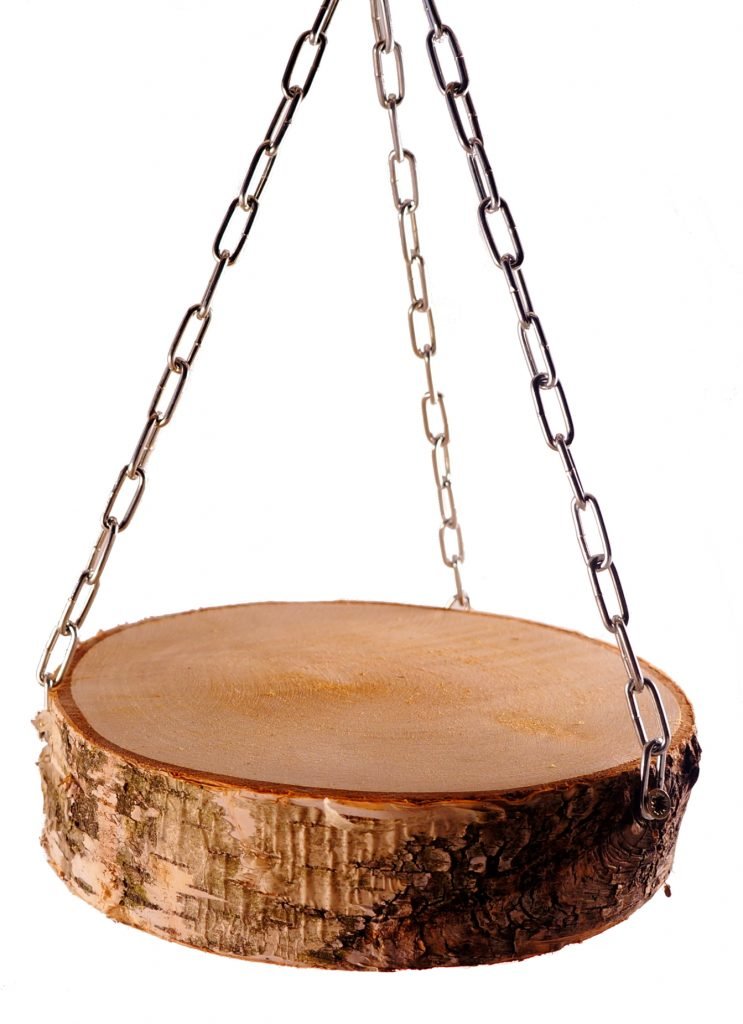 Kruhová břízová plošina zavěšená na řetězech z nerezové oceli 20 cm. Obsahuje snadné upevnění na klec pomocí karabiny. číst celé