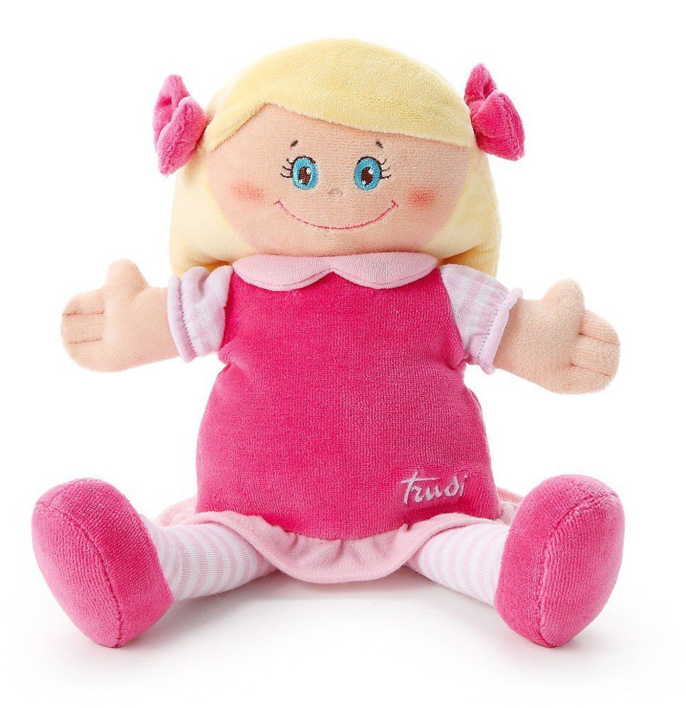 Miękka, urocza lalka, przytulanka blondynka z pewnością spodoba się dziewczynkom.