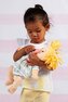 Tato plyšová panenka vypadá jako malá blondýnka se dvěma copánky, což jí dodává veselý a přívětivý výraz. Je velmi příjemná na dotek a její detaily, jako jsou viditelné prsty a pupík, ji činí ještě realističtější a atraktivnější. Výška 38 cm je ideální pro malé ruce, takže ji děti snadno drží a nosí kamkoliv s sebou.