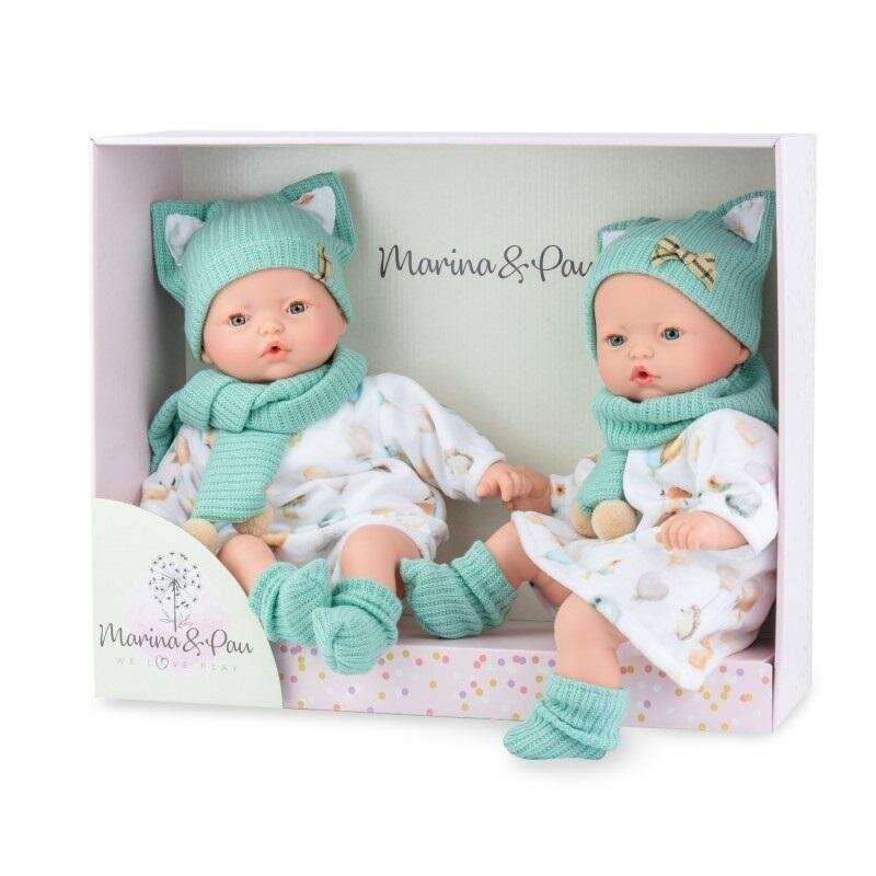 Modnie ubrana para 42-centymetrowych bliźniaków to jedyna w swoim rodzaju propozycja od producenta lalek hiszpańskich - Marina &Pau. Są to modele interaktywne - po wyjęciu smoczka magnetycznego bobasy płaczą. To wymarzona zabawka dla dzieci, które uwielbiają lalki przytulać, kołysać do snu i przebierać. Wykonane w całości w Hiszpanii lalki posiadają miękki brzuszek oraz głowę i kończyny wykonane z gładkiego, jasnego, ręcznie malowanego winylu. Ubrane są w dopracowane w każdym szczególe ręcznie szyte ubranka o delikatnej kolorystyce.