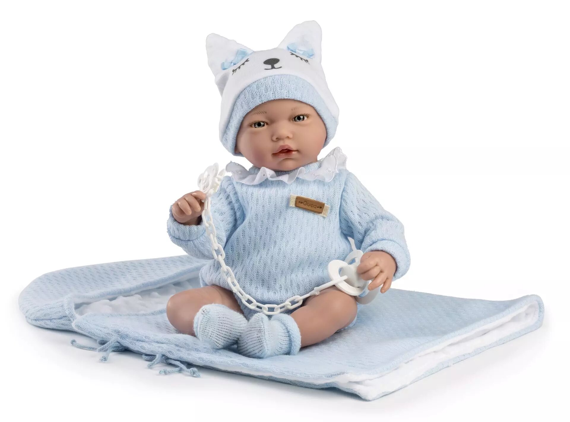 Guca 960 GAEL - realistická panenka miminko se zvuky a měkkým látkovým tělem - 38 cm