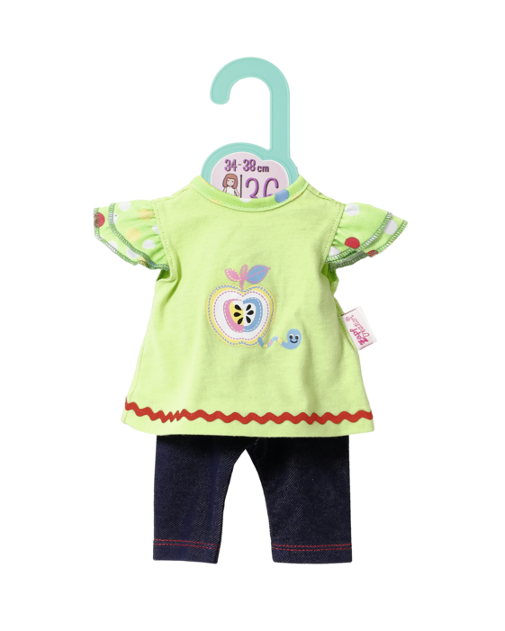 Pohodlné oblečení pro panenky ve velikosti 34 - 38 cm. Součástí šatičky a legíny. číst celé