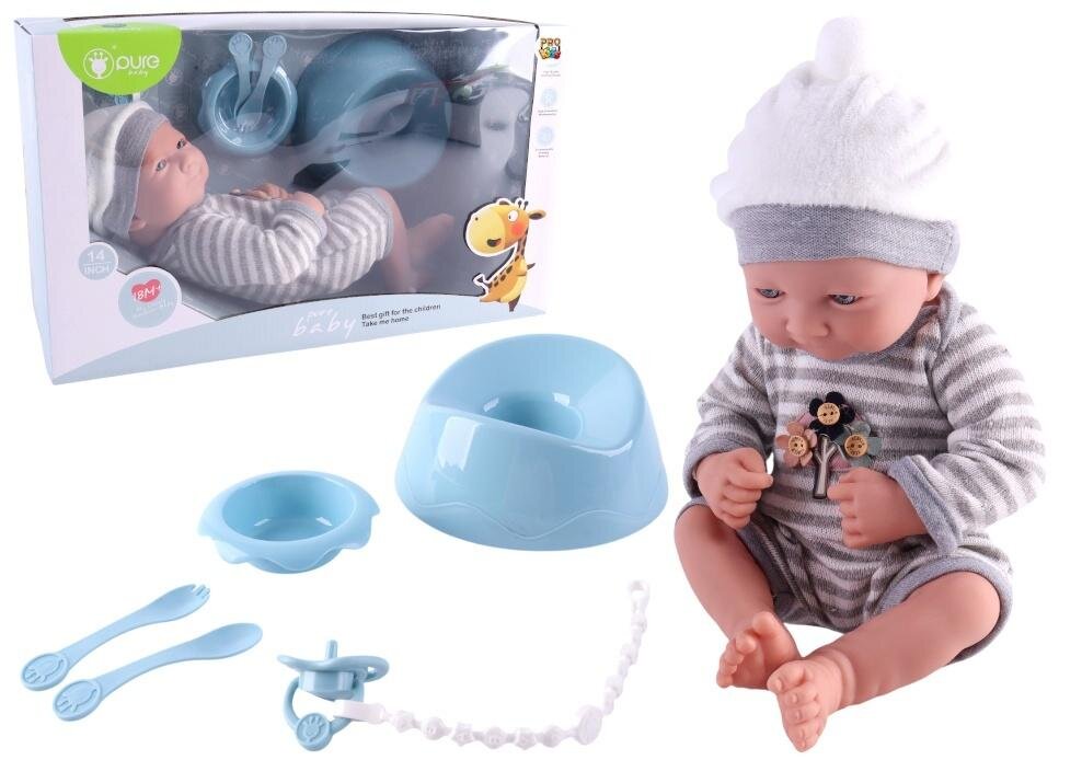 Ta urocza lalka bobas to doskonały sposób na rozwijanie kreatywności i zdolności opiekuńczych u dzieci. Ubrana w stylowy szary pajacyk w paski oraz dopasowaną czapeczkę, lalka wygląda jak prawdziwe niemowlę. Zestaw zawiera bogaty wybór akcesoriów, które umożliwiają wszechstronną zabawę i troskliwą opiekę.