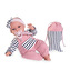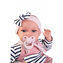Gaworząca lalka hiszpańska Toneta z torebką Antonio Juan 70332 Szczególną popularnością wśród unikalnych lalek hiszpańskich marki Antonio Juan cieszą się bobasy interaktywne. Toneta 70332 słodko gaworzy, uatrakcyjniając dziecku zabawę w odgrywanie roli troskliwej opiekunki. Zachwyca charakterystyczna dla Tonety pogodna twarzyczka oraz niebieskie oczka opatrzone wianuszkiem długich rzęs. 34-centymetrowa lalka hiszpańska, posiada główkę i ruchome kończyny wykonane z miękkiego, przyjemnego w dotyku winylu. Dzięki miękkiemu brzuszkowi jest idealna do przytulania. W zestawie także miękka torebka dla dziecka i smoczek magnetyczny. Hiszpańska lalka Baby Toneta 70332 w komplecie z akcesoriami i szytymi ręcznie ubrankami Realistycznie wyglądająca, winylowa dziewczynka z miękkim brzuszkiem posiada wyrzeźbione włoski oraz delikatnie malowane brwi, usta, paznokcie i fałdki. Toneta od marki Antonio Juan ubrana jest w mięciutką, bawełnianą bluzeczkę w paski oraz różowe muślinowe ogrodniczki. Strój dopełnia pluszowa opaska na głowę, zdobiona kokardką. W zestawie znajduje się także smoczek na tasiemce oraz prezent dla dziewczynki: miękka torebka na ramię woreczek o kształcie rybki. Funkcyjna lalka hiszpańska Toneta 70332 marki Antonio Juan Idealna do przytulania i zabawy lalka hiszpańska 70332 posiada wszystkie wymagane certyfikaty bezpieczeństwa. Ręcznie wykonana w całości w Hiszpanii, zapakowana jest w biało-różowe, ozdobne pudełko z wieczkiem. Doskonale sprawdza się jako wyjątkowy upominek dla miłośniczki unikalnych zabawek. OSTRZEŻENIE! Zabawka nie jest odpowiednia dla dzieci poniżej 36 miesiąca. Zawiera drobne elementy, których połknięcie grozi niebezpieczeństwem. UWAGA. Przed oddaniem zabawki dziecku należy usunąć i wyrzucić wszystkie zabezpieczenia. Kolory, wzory, zawartość produktu mogą się różnić.