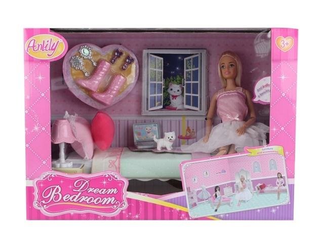 Lalka kocha spędzać czas w swoim pokoju, który jest uroczy, nowoczesny i pełen niespodzianek! Znajdziesz tu łóżko,szafkę nocną, laptop, wysokie buty oraz ślicznego pupila. Dodatkowe akcesoria jak lusterko, szczotka oraz spinki uatrakcyjniają zabawę. Lalka wygląda uroczo w różowo białej sukience,...