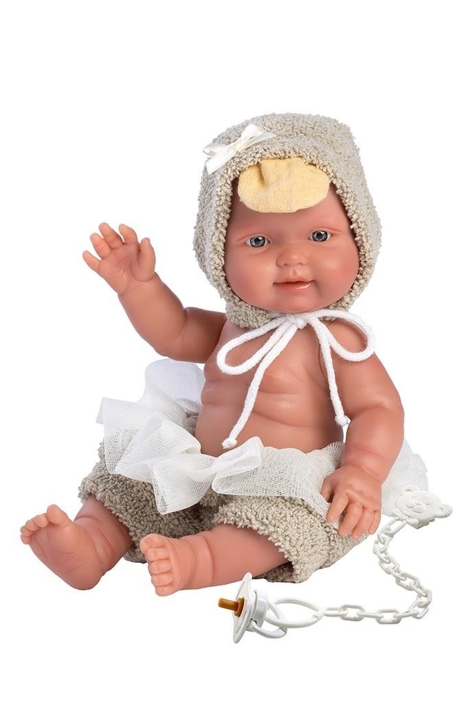 Lalka bobas kaczuszka pochodzi z najnowszej kolekcji hiszpańskiej marki Llorens. Jest to chłopiec w stroju kaczki. Pogodna lalka zawsze poprawi humor swoim uroczym uśmiechem i radością w oczkach. Dzięki liniom papilarnym i uroczym fałdkom na całym ciałku jest ona odwzorowaniem prawdziwego dziecka, co skłania do obdarowywania jej miłością. Wiązaną czapeczkę kaczuszki i spodenki wykonano z miękkiego materiału. Ubranka się łatwo zdejmuje, co umożliwia przebieranie lalki lub kąpanie, zanurzając ją w wodzie do poziomu szyi. Smoczek dołączony do lalki pełni funkcję dekoracyjną. Lalka została zapakowana w ozdobny karton. Kochamy hiszpańskie lalki Llorens!
