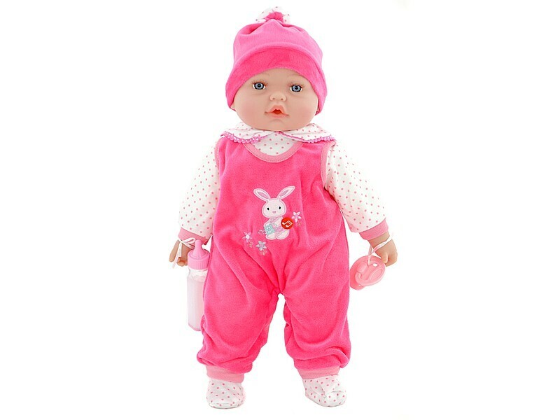Lalka bobas smoczek + butelka mówi po polsku 45cm