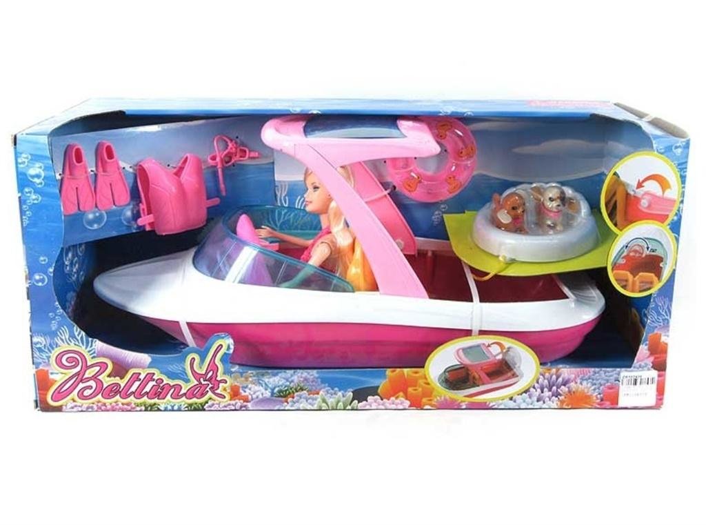 Lalka w łódce z akcesoriami oraz dwoma pieskami. číst celé