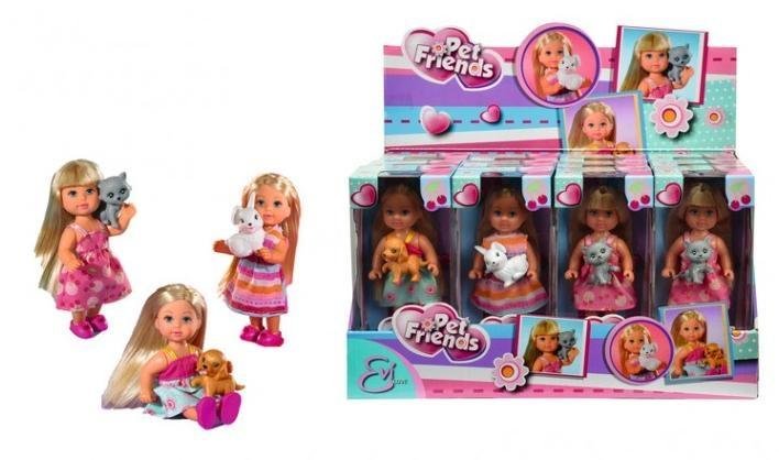 Panenka Evi v půvabné letní sukýnce přijíždí v doprovodu roztomilého pejska, kočičky nebo králíčka, kteří se stávají jejím věrným společníkem. Díky různorodosti setů plných barev a detailů si každé dítě může vybrat zvířátko, které mu bude nejvíce blízké. Hra s těmito postavičkami podporuje kreativitu a pomáhá rozvíjet jemné motorické schopnosti.