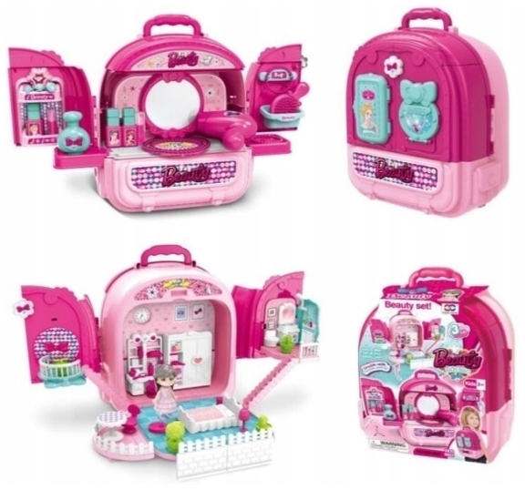 Domek dla lalek toaletka dziecięca w mobilnym plecaku 3w1, Norimpex